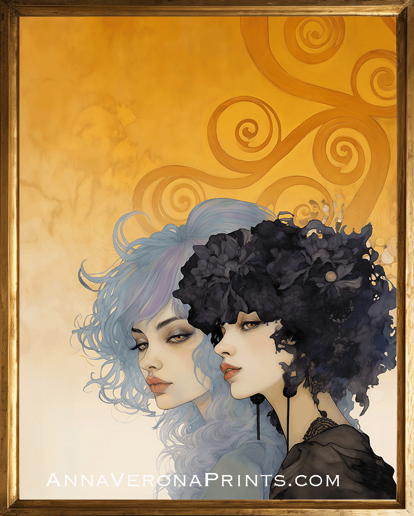 In this artwork, I wanted to contemplate the beauty of friendship, the passage of time, and the timeless appeal of deco charm. “Vintage Souls, Modern Hearts” is not just a portrait; it’s a celebration to friendship, great style and good times together.