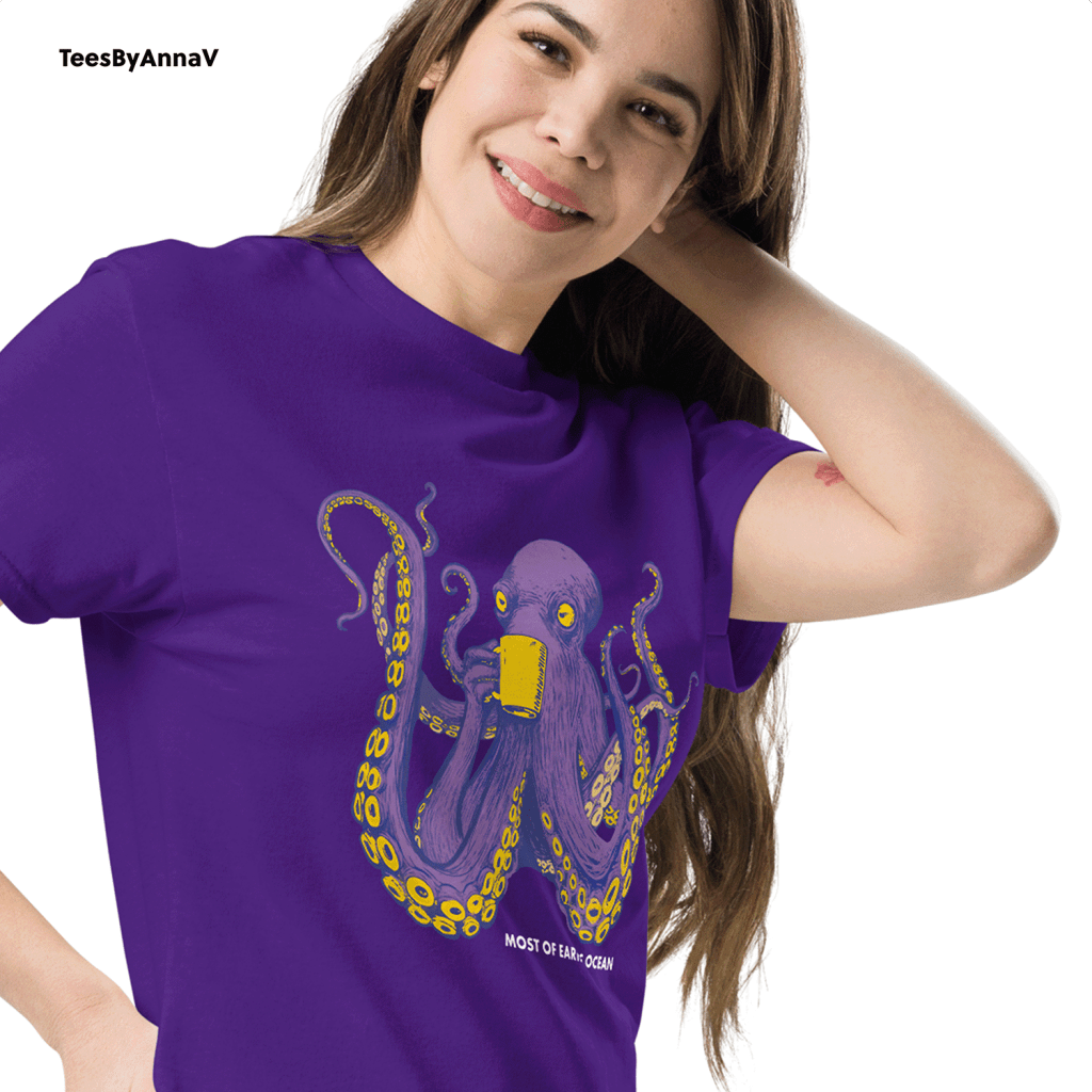 So, whether you’re an ocean enthusiast, a comic book fan, or just someone who appreciates a clever graphic tee, this octopus is ready to wrap its arms around your wardrobe.