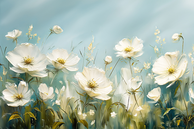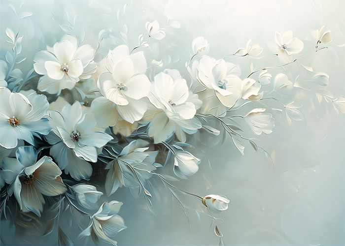 Bright Blooms White Flowers and Pastel Blue Digital Art By AnnaV Frame Format-Ratio 2:3
